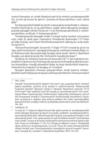 տարուի ենթադրելու թէ յետին միտքերով գործ մը կը տեսնուի պատրիարքարանին « մէջ որ խաղ կը խաղան իր գլխուն, », կատարուած իրողութիւններու առջեւ դնելով զինք27: Այս ենթադրութիւնն ինքնին կը մատնէ առկայութիւնը կասկածանքի եւ անվստա -հութեան ենթահողի մը որ այլ գործօններու շարքին կրնար վերագրուիլ պատրիար , , -քարանի ընթացքին տեսնել Յաւելուած ( 1- ն իր ծանօթագրութիւններով եւ ատենա -գրութիւններու բաժնի թիւ 31 ծանօթագրութիւնը): 28Պատրիարքարանի ընթացքին մասին Նուպարի համար կասկած յառաջացնող ուրիշ առիթ մը պիտի ըլլար Համբարձում Առաքելեանի ֆրանսագիր 5/18 Մայիս թուակիր նամակը որուն Արամ Անտոնեանի թարգմանած օրինակը կու տանք որպէս , Յաւելուած 47: Վերադառնալով ծրագրին Արշարունի , 13 Ապրիլ 1913- ին Նուպարի կը գրէ թէ տը Կիրս արդէն մատնանշած է սրբագրելի կէտեր իբր իր անձնական համոզումները եւ « », թէ Փեթերսպուրկէն վերադարձուելիք ծրագիրը պիտի կազմէ միակ եւ վերջնական « ծրագիրը զոր պիտի փութանք Ձեր Վսեմութեան ուղարկել ընդ փոյթ, » : 29Այսպիսով կը ստեղծուէր կատարուած իրողութիւն մը եւ երբ հայկական բաղ, 30 -ձանքներուն նկատառումով Մանտելշթամի պատրաստած ծրագրին կը վիճակուի դառ -նալ դեսպաններու ժողովին քննարկման հիմքը կը ծագի ակադեմական հարցումը , .- Իսկութեան մէջ հայկակա՞ն էր ծրագիրը թէ՞ ռուսական , : Ծրագրին վերաբերող հետագայ զարգացումներու մասին կարեւոր տեղեկու -թիւններն արդէն ներկայացուած ըլլալով ատենագրութիւններով եւ համապատասխան 27 ՊՏԴ Շ, 405:28 Ազգային Պատուիրակութիւնն սկիզբէն եւեթ եղած է քար գայթակղութեան՝ ստեղծած ըլլալով դժգոհներու շրջանակ մը իր կազմով եւ գործունէութեամբ Փեթերսպուրկի : հայկական խմբակէն Նիկողայոս Ադոնց եւ Սիրական Տիգրանեան տակաւին 1913- իՅունուարին Պոլիս այցելելով ուզած էին պարզել թէ պատուիրակութիւնն ունէ՞ր բարե -նորոգումներու հարցով զբաղելու ձեռնհասութիւն Այցելուները բնականաբար շփուած : , , էին Քաղաքական Ժողովի եւ Ապահովութեան Յանձնաժողովի անդամներուն ինչպէս , նաեւ այլ կարեւոր եւ դիրքերու վրայ գտնուող դէմքերու հետ Երկու պատուիրակները : վերադարձած էին բազմիցս տեղի հայ գործիչներից դժգոհութիւն լսելէ ետք Սիմոնյան « » (, 244–249):29 Հովսեփյան, 20:30 Նուպար իր 21 Ապրիլ թուակիրով Արշարունիի պիտի յայտնէր թէ պատրիարքարանին բռնած ընթացքը վնասակար կը նկատէ հայ դատին որովհետեւ պատրիարքարանին եւ , պատուիրակութեան միջեւ անհամաձայնութիւն մը կրնայ շահագործուիլ Թուրքիոյ եւ մեծ պետութեանց կողմէ Նաեւ պիտի յայտնէր թէ պահ մը նոյնիսկ մտածած է հրաժարական : տալու մասին Նուպար օր մը ետք իր դժգոհութիւնն արտայայտող նամակ մը պիտի ուղղէր : նաեւ Գէորգ Ե ի Հովսեփյան . (, 21–26): Իր 23 Ապրիլ թուակիրով Նուպար Հ Առաքելեանի . պիտի յայտնէր թէ պատրիարքարանը որ կ՚ուզէ Պոլսոյ մէջ վարել բանակցութիւններ , անկախ անոնցմէ զորս Պատուիրակութիւնը Կաթողիկոսէն պաշտօն ստացած է կատա -րելու Եւրոպայի մէջ ստեղծած է ծանր կնճռոտութիւններ ՓՆՄ ԶՆՀՀՄ , « » (, ):ՀԱՅԿԱԿԱՆ ԲԱՐԵՆՈՐՈԳՈՒՄՆԵՐՈՒՆ ԱՌՆՉՈՒՈՂ ՆԻՒԹԵՐ (1912-1914)| 117