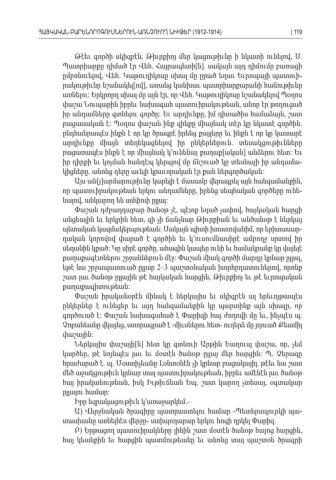 Թէեւ գործի սկիզբէն Թիւրքիոյ մեր կացութիւնը ի նկատի ունելով Ս , , . Պատրիարքը դիմած էր Վեհ Հայրապետի ն սակայն այդ դիմումը բառացի . [ ]. ըմբռնուելով Վեհ Կաթուղիկոսը սխալ մը ըրած եղաւ Եւրոպայի պատուի, . -րակութիւնը նշանակել ով առանց կանխաւ պատրիարքարանի հաճութիւնը [ ], առնելու Երկրորդ սխալ մը այն էր որ Վեհ Կաթուղիկոսը նշանակելով Պօղոս: , . փաշա Նուպարին իբրեւ նախագահ պատուիրակութեան անոր էր թողուցած , իր անդամները գտնելու գործը Եւ արդիւնքը իմ դիտածիս համաձայն շատ : , , բացասական է Պօղոս փաշան ինք զինքը միայնակ տէր կը նկատէ գործին : . ընդհանրապէս ինքն է որ կը ծրագրէ իրենց քայլերը եւ ինքն է որ կը կատարէ արդիւնքը միայն տեղեկացնելով իր ընկերներուն տեսակցութիւնները . բացառապէս ինքն է որ միայնակ կ՚ունենայ քաղաք ական անձերու հետ Եւ [] : իր դիրքի եւ կոչման հանդէպ կերպով մը ճնշուած կը տեսնայի իր անդամա -կիցները անոնց դերը աւելի կրաւորական էր քան ներգործական. : Այս ան յ արմարութիւնը կարելի է մասամբ վերագրել այն հանգամանքին [ ] , որ պատուիրակութեան երկու անդամները իրենց սեպհական գործերը ունե , -նալով անկարող են ամփոփ ըլլալ, : Փաշան դժբաղդաբար ծանօթ չէ պէտք եղած չափով հայկական հարցի , , անցեալին եւ երկրին հետ զի չի ճանչնար Թիւրքիան եւ անծանօթ է ներկայ , պետական կազմակերպութեան Սակայն պիտի խոստովանիմ որ երիտասար : , -դական կորովով փարած է գործին եւ կ՚ուսումնասիրէ ամբողջ սրտով իր սեղանին կքած Կը սիրէ գործը ահագին կապեր ունի եւ համակրանք կը վայելէ : , քաղաքագէտներու շրջաններուն մէջ Փաշան միակ գործի մարդը կրնար ըլլալ : , եթէ նա շրջապատուած ըլլար 2–3 պաշտօնական խորհրդատուներով որոնք , շատ լաւ ծանօթ ըլլային թէ հայկական հարցին Թիւրքիոյ եւ թէ եւրոպական , քաղաքագիտութեան: Փաշան իրականօրէն մինակ է ներկայիս եւ սկիզբէն ալ երեւոյթապէս ընկերներ է ունեցեր եւ այդ հանգամանքին կը պարտինք այն սխալը որ , գործուած է Փաշան նախագահած է Փարիզի հայ ժողովի մը եւ ինչպէս պ : , . Չոբանեանը վկայեց ստորագրած է միւսներու հետ ուղերձ մը յղուած Քեամիլ , - - փաշային: Ներկայիս փաշայի ն հետ կը գտնուի Արթին Եաղուպ փաշա որ չեմ [ ] , , կարծեր թէ նոյնպէս լաւ եւ մօտէն ծանօթ ըլլայ մեր հարցին Պ Չերազը, : . հրաժարած է պ Մօստիչեանը Լօնտօնէն չի կրնար բացակայիլ թէեւ նա շատ . . . մեծ աջակցութիւն կրնար տալ պատուիրակութեան իբրեւ ամէնէն լաւ ծանօթ , հայ իրականութեան իսկ Իւթիւճեան Եպ շատ կարող չտեսայ օգտակար , . , ըլլալու համար : Իբր եզրակացութիւն կ՚առաջարկեմ .- Ա Վերջնական ծրագիրը պատրաստելու համար Պետերսպուրկի պա) - -տասխանը առնելնէս վերջը ստիպողաբար երկու հոգի ղրկել Փարիզ - . Բ Երթացող պատուիրակները լինին շատ մօտէն ծանօթ հայոց հարցին) , հայ կեանքին եւ հարցին պատմութեանը եւ անոնց տալ պաշտօն ծրագրի ՀԱՅԿԱԿԱՆ ԲԱՐԵՆՈՐՈԳՈՒՄՆԵՐՈՒՆ ԱՌՆՉՈՒՈՂ ՆԻՒԹԵՐ (1912-1914)| 119