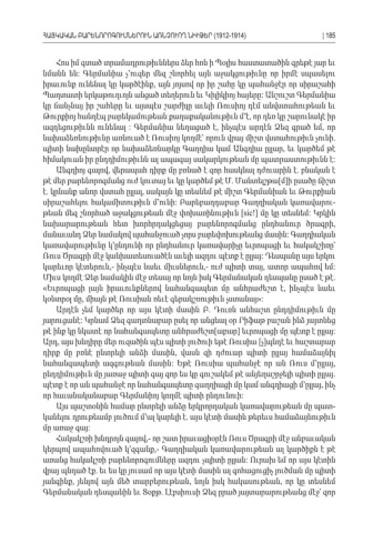 Հոս իմ գտած տրամադրութիւններս ձեր հոն ի Պօլիս հաստատածին գրեթէ յար եւ նմանն են Գերմանիա չ՚ուզեր մեզ շնորհել այն աջակցութիւնը որ իրմէ սպասելու : իրաւունք ունենալ կը կարծէինք այն յոյսով որ իր շահը կը պահանջէր որ սիրաշահի , Պաղտատի երկաթուղւոյն անցած տեղերուն եւ Կիլիկիոյ հայերը Անշուշտ Գերմանիա : կը ճանչնայ իր շահերը եւ այսպէս շարժիլը աւելի Ռուսիոյ դէմ անվստահութեան եւ Թուրքիոյ հանդէպ բարեկամութեան քաղաքականութիւն մ՚է որ դեռ կը շարունակէ իր , ազդեցութիւնն ունենալ Գերմանիա նեղացած է ինչպէս արդէն Ձեզ գրած եմ որ : , , նախաձեռնութիւնը առնուած է Ռուսիոյ կողմէ՝ որուն վրայ միշտ վստահութիւն չունի . պիտի նախընտրէր որ նախաձեռնարկը Գաղղիա կամ Անգղիա ըլլար եւ կարծեմ թէ , հիմակուան իր ընդդիմութիւնն ալ ապագայ սակարկութեան մը պատրաստութիւնն է : Անգղիոյ գալով վերապահ դիրք մը բռնած է զոր հասկնալ դժուարին է բնական է , . թէ մեր բարենորոգմանց ուժ կուտայ եւ կը կարծեմ թէ Մ Մանտելշթա մ ի ըսածը ճիշտ . [ ] է կրնանք անոր վստահ ըլլալ սակայն կը տեսնեմ թէ միշտ Գերմանիան եւ Թուրքիան. , սիրաշահելու հակամիտութիւն մ՚ունի Բարեբաղդաբար Գաղղիական կառավարու : -թեան մեզ շնորհած աջակցութեան մէջ փոխառինութիւն [sic!] մը կը տեսնեմ Կրկին: նախարարութեան հետ խորհրդակցեցայ բարենորոգմանց ընդհանուր ծրագրի , մանաւանդ Ձեր նամակով պահանջուած չորս բարեփոխութեանց մասին Գաղղիական : կառավարութիւնը կ՚ընդունի որ ընդհանուր կառավարիչը եւրոպացի եւ հակակշիռը՝ Ռուս Ծրագրի մէջ կանխատեսուածէն աւելի ազդու պէտք է ըլլայ Դեսպանը այս երկու : կարեւոր կէտերուն ինչպէս նաեւ միւսներուն ուժ պիտի տայ ատոր ապահով եմ ,- ,- , : Միւս կողմէ Ձեր նամակին մէջ տեսայ որ նոյն իսկ Գերմանական դեսպանը ըսած է թէ . «Եւրոպացի լայն իրաւունքներով նահանգապետ մը անհրաժեշտ է ինչպէս նաեւ , կօնտրօլ մը միայն թէ Ռուսիան ոեւէ գերակշռութիւն չստանայ , »: Արդէն չեմ կարծեր որ այս կէտի մասին Բ Դուռն անհաշտ ընդդիմութիւն մը . յարուցանէ Կրնամ Ձեզ գաղտնաբար ըսել որ անցեալ օր Րիֆաթ բաշան ինձ յայտնեց: թէ ինք կը նկատէ որ նահանգապետը անհրաժեշտ աբար եւրոպացի մը պէտք է ըլլայ [] : Արդ այս խնդիրը մեր ուզածին պէս պիտի լուծուի եթէ Ռուսիա չ պնդէ եւ հաշտարար, [ ] դիրք մը բռնէ ընտրելի անձի մասին վասն զի դժուար պիտի ըլլայ համաձայնիլ , նահանգապետի ազգութեան մասին Եթէ Ռուսիա պահանջէ որ ան Ռուս մ՚ըլլայ : , ընդդիմութիւն մը յառաջ պիտի գայ զոր ես կը գուշակեմ թէ անյեղաշրջելի պիտի ըլլայ . պէտք է որ ան պահանջէ որ նահանգապետը գաղղիացի մը կամ անգղիացի մ՚ըլլայ ինչ , որ հաւանականաբար Գերմանիոյ կողմէ պիտի ընդունուի : Այս պաշտօնին համար ընտրելի անձը երկրորդական կառավարութեան մը պատ -կանելու դրութեամբ լուծում մ՚ալ կարելի է այս կէտի մասին թերեւս համաձայնութիւն . մը առաջ գայ : Հակակշռի խնդրոյն գալով որ շատ իրաւացիօրէն Ռուս Ծրագրի մէջ անբաւական ,- կերպով ապահովուած կ՚զգանք Գաղղիական կառավարութեան ալ կարծիքն է թէ ,- առանց հակակշռի բարենորոգումները ազդու չպիտի ըլլան Ուրախ եմ որ այս կէտին : վրայ պնդած էք եւ ես կը յուսամ որ այս կէտի մասին ալ գոհացուցիչ լուծման մը պիտի . յանգինք յենլով այն մեծ տարբերութեան նոյն իսկ հակասութեան որ կը տեսնեմ, , , Գերմանական դեսպանին եւ Տօքթ Լէբսիուսի Ձեզ ըրած յայտարարութեանց մէջ՝ զոր . ՀԱՅԿԱԿԱՆ ԲԱՐԵՆՈՐՈԳՈՒՄՆԵՐՈՒՆ ԱՌՆՉՈՒՈՂ ՆԻՒԹԵՐ (1912-1914)| 185