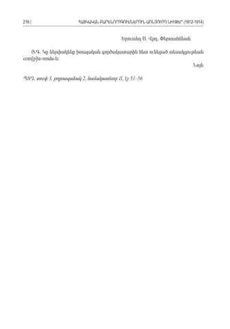 Երուանդ Ծ Վրդ Փերտահճեան . . Յ Գ Կը ներփակենք իտալական գործակատարին հետ ունեցած տեսակցութեան. . com[p]te-rendu- : նՆոյն ՊՏԴ տուփ, 3, թղթապանակ 2, նամակատետր Ճ էջ , 51–56 216 |ՀԱՅԿԱԿԱՆ ԲԱՐԵՆՈՐՈԳՈՒՄՆԵՐՈՒՆ ԱՌՆՉՈՒՈՂ ՆԻՒԹԵՐ (1912-1914)