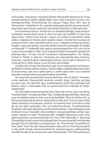 մատուցանել Բայց ինչպէս Հայկական խնդրոյն միջազգային վերաբացումը Պօլսոյ: թելադրութեամբ էր նոյնպէս սկիզբէն մինչեւ այսօր անոր ուղղութիւն տուողը եւ բուն , բանակցութիւնները Դեսպանատանց մօտ վարողը Պօլիսը մնաց Թէեւ պահ մը : Պետութեանց Դահլիճներուն մէջ ուղղակի խորհրդակցութիւններ կատարուեցա ն [ ], բայց հարցը պաշտօնապէս բացուելուն պէս իրական կեդրոնը հոս փոխադրուեցաւ : Ասոր պատճառը երկուք է առաջին այն է որ Հայկական խնդիրը Հայոց ցաւերը եւ . , տաճկական մտայնութիւնը պէտք էր սերտուած ըլլալ այն մարմինէն որ զայն ձեռք պիտի առնէր Պոլիսէն դուրս դժուար է այդքան այս բաներուն քաջածանօթ անձեր : գտնել եւ երկրորդը թէ Ռուսիա իբրեւ արդիւնք Հայոց եւ Ռուսիոյ մէջ հաստատուած , , բարեկամութեան ինքը նախաձեռնութիւնը առաւ Հայկական բարենորոգումներու, հարցին եւ զայն առաջ վարելու պաշտօնը յանձնեց Պոլսոյ Ռուս դեսպանին Տը Կիրսին , , որ նախորդին Պ Չարիքովին չափ Հայասէր տրամադրութիւններ ունէր որուն պէտք , . , է ըսել թէ նպաստեցինք եւ մենք Ասով Հայկական հարցին ծանրութեան կեդրոնը հոս : փոխադրուեցաւ Նուպար փաշան Եւրոպական մայրաքաղաքներու մէջ Փարիզ: , , Լոնտոն եւ Պերլին եւ մենք հոս՝ Դեսպանաց քով աշխատեցանք միշտ համաձայ , -նութեամբ շարունակ զիրար տեղեկագրելով իրարու ըսածը, , appuyer ընելով հոս եւ Եւրոպայի մէջ եւ մինչեւ ցայսօր ալ այս ձեւով կը շարունակենք : Առաջին բանը Ռուսիոյ մեզ նկատմամբ ցոյց տուած բարեացակամ տրամադրու -թիւններուն սահմանը գիտնալ պէտք էր Արդեօք անիկա Հայկական ինքնավարութիւն : մը հաստատելու չափ առաջ պիտի երթա՞ր եւ յանձն պիտի առնէ՞ր այս աստիճան լայնամիտ բարենորոգմանց պաշտպանութիւնը ստտանձնել : Այս հարցումին պատասխանը հաստատական եղաւ ահա թէ ինչպէս Դեսպանա : -տունը սկզբմամբ Բեթրսպուրկէն հրահանգ ստանալէ վերջը հրահանգ զոր ինքը , provoquer ըրաւ մեր դիմումին վրայ բարենորոգմանց մասին մեր բաղձանքը նախ , իմանալ ուզեց եւ առաջարկեց մեզի որ պատճառաբանեալ նախագիծ մը ներկա -յացնենք իրեն : Այս նախագծին պատրաստութիւնը երկու երեք ամիս տեւեց բոլոր Հայութիւնը . , Յեղափոխական Կուսակցութիւններն Ազգ Ժողովի խմբակցութիւնները վերջապէս , . , բոլոր հոսանքները պէտք էր անոր շուրջ համաձայնեցնել Պէտք չէր մոռնալ նաեւ որ : Թիւրք կառավարութիւնը անհաշտ պիտի գտնուէր անոր դէմ եւ շատ մը յապաւումներ պիտի պահանջէր եւ հաւանաբար ստանար Կը սպասուէր նաեւ որ Ռուսիա ալ անկէ , : քիչ մը բան պիտի պակսեցնէր Ահա այս նախատեսութեամբ Պատրիարքարանը : , կազմեց իր նախագիծը ընդարձակ պատճառաբանութեամբ Նախ ներկայացուց զայն : մի միայն Ռուսաց Դեսպանին անոր կարծիքը եւ թելադրութիւնները առնելու նպա -տակով վերջինս իր կողմէ Պետ եր սպուրկի Դահլիճին ներկայացուց զայն անոր. [ ] , կցելով ընդարձակ պատճառաբանութիւն մը Ապա Մեծն Բրիտանիոյ եւ Ֆրանսայի : Դեսպաններուն կողմէ յայտնուած փափաքին վրայ Ռուսիոյ դեսպանին հաճութեամբը ծրագրին մէկ մէկ օրինակ ն ալ հաղորդուեցաւ այս Պետութեանց Դեսպաններուն [ ] : Միւս կողմէ Պօղոս Փաշայի նախագահութեան տակ գտնուող Պատուիրակութիւնն ալ մեր կողմէ ծրագրի պատրաստութեան մը անգիտակ ըլլալով բարենորոգմանց , առանձին ծրագիր մը կը պատրաստէր զայն ներկայացնելու Մեծ Պետութեանց կամ ՀԱՅԿԱԿԱՆ ԲԱՐԵՆՈՐՈԳՈՒՄՆԵՐՈՒՆ ԱՌՆՉՈՒՈՂ ՆԻՒԹԵՐ (1912-1914)| 245