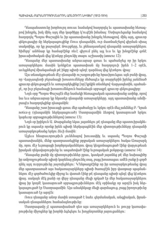 Դեսպանատունը խորհուրդ տուաւ նամակով հաղորդել եւ պատասխանը հեռագ -րով խնդրել իսկ մինչ այդ մեր կարծիքը կ՚ուզէին իմանալ Ստիպուեցանք նամակով , : հաղորդել Պօղոս Փաշային եւ իր պատասխանը խնդրել հեռագրով մինչ այդ գրաւոր . , զեկուցագիր մը ներկայացուցինք Ռուս դեսպանին ուր մատնանշելով զիջման սխալ , տակտիկը որ կը քաջալերէ Թուրքերը եւ քննադատելով դեսպանի առաջարկներու, , հիմերը՝ անհնար կը համարէինք ոեւէ զիջում ընել այլ եւս եւ կը խնդրէինք գոնէ իրաւախոհական վեց կէտերը ընդունիլ տալու աշխատիլ (annexe 12): Դեսպանը մեր պատասխանը անբաւարար գտաւ եւ պահանջեց որ իր երկու առաջարկներու մասին կօնկրէտ պատասխան մը հաղորդուի իրեն 1–2 օրէն, աւելցնելով միանգամայն թէ ինքը պիտի պնդէ դարձեալ վեց կէտերու վրայ : Այս տեսակցութեան մէջ դեսպանի ուշադրութիւնը հրաւիրուեցաւ այն բանի վրայ , որ Վարչապետի բերանացի խոստումները մեծապէս կը տարբերին իրենց յանձնած գրաւոր զեկուցագրէն եւ առաջարկեցինք որ կրկին տեսնելով Վարչապետին պահան [ ] , -ջէ որ իւր բերանացի խոստումներուն համաձայն սրբագրէ գրաւոր զեկուցագիրը, : Նոյն օրը Պօղոս Փաշայէն մեր նամակի հեռագրական պատասխանը առինք որով , նա եւս անբաւարար կը նկատէր դեսպանի առաջարկները այդ պատասխանը անմի . -ջապէս հաղորդեցինք դեսպանին : Դեսպանը շատ իրաւացի գտաւ մեր պահանջը եւ երկու օրէն մեզ յանձնեց Բ Դրան . notice- (ը դեսպանին ներկայացուած Սատրազամին ձեռքով կատարուած երկու ) կարեւոր սրբագրութիւններով (annexe 13): Նոյն օր իրիկուն Ա Թարգմանը եկաւ յայտնելու թէ դեսպանը մեր պատուիրակնե . -րուն կը սպասէր որոնք իրեն պիտի ներկայացնէին մեր դիտողութիւնները դեսպանի առաջարկութեանց երկու ձեւի մասին : Այլեւս հնարաւորութիւն չունենալով խուսափիլ եւ սպասել Պօղոս Փաշայի պատասխանին մենք պատրաստեցինք թրքական առաջարկներու հակա Առաջարկ, - մը որու մէջ եւրոպացի խորհրդականներու վրայ կեդրոնացուցած էինք վարչութեան, իրական ղեկավարութիւնը եւ ապահոված էինք եւրոպական քօնթրօլը (annexe 14): Դեսպանը քանի մը դիտողութիւններ ըրաւ կասկած յայտնեց թէ մեր նախագիծը , իր ամբողջութեամբ պիտի կարենայ ընդունել տալ բայց խոստացաւ ամէն ջանք ի գործ , դնել այդ ուղղութիւնը յաջողեցնելու Կ՚ենթադրէինք որ իր առաջարկութեանց վրայ : մեր պատրաստած այս հակառաջարկները պիտի ծառայէին իբր վատթար պայման -ներու մէջ գործածուելիք միջոց եւ վստահ էինք թէ դեսպանը պիտի պնդէ վեց կէտերու վրայ սակայն մէկ քանի օր վերջ դեսպանը մեզի ղրկած էր մեր հակառաջարկներու. վրայ իր կողմէ կատարուած սրբագրութիւններու մէկ օրինակը որ արդէն իսկ ներ -կայացուցած էր Սատրազամին Այս անակնկալը մեզի զարմացուց բայց իրողութիւնը : , կատարուած էր արդէն : Ռուս դեսպանը անոր մասին ստացած է նաեւ գերմանական անգլիական ֆրան , , -սական դեսպաններու համաձայնութիւնը : Սատրազամը չէ պատասխանած դեռ այս առաջարկներուն եւ թուրք կառավա -րութիւնը միջոցներ կը խորհի ձգձգելու եւ խոչընդոտներ յարուցանելու : ՀԱՅԿԱԿԱՆ ԲԱՐԵՆՈՐՈԳՈՒՄՆԵՐՈՒՆ ԱՌՆՉՈՒՈՂ ՆԻՒԹԵՐ (1912-1914)| 253