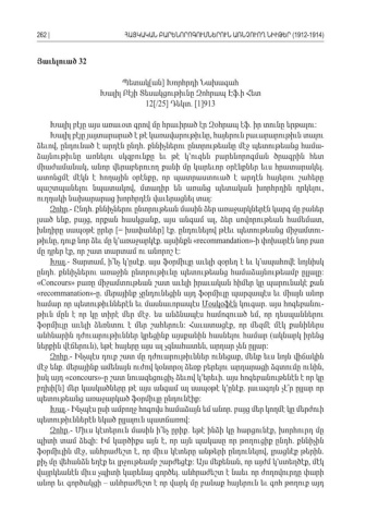 Յաւելուած 32 Պետակ ան Խորհրդի Նախագահ[] Խալիլ Բէյի Տեսակցութիւնը Զոհրապ Էֆ ի Հետ . 12[/25] Դեկտ. [1]913 Խալիլ բէյը այս առաւօտ գրով մը հրաւիրած էր Զօհրապ էֆ իր տունը երթալու . : Խալիլ բէյը յայտարարած է թէ կառավարութիւնը հայերուն բաւարարութիւն տալու , ձեւով ընդունած է արդէն ընդհ քննիչներու ընտրութեանը մէջ պետութեանց համա, . -ձայնութիւնը առնելու սկզբունքը եւ թէ կ՚ուզեն բարենորոգման ծրագրին հետ միաժամանակ անոր վերաբերուող քանի մը կարեւոր օրէնքներ եւս հրատարակել, . ատոնցմէ մէկն է հողային օրէնքը որ պատրաստուած է արդէն հայերու շահերը , պաշտպանելու նպատակով մտադիր են առանց պետական խորհրդին ղրկելու , , ուղղակի նախարարաց խորհրդէն վաւերացնել տալ : Զոհր Ընդհ քննիչներու ընտրութեան մասին ձեր առաջարկներէն կարգ մը բաներ.- . լսած ենք բայց որքան հասկցանք այս անգամ ալ ձեր սովորութեան համեմատ , , , , , խնդիրը սապօթէ ըրեր [= խափաներ էք ընդունելով թէեւ պետութեանց միջամտու] . -թիւնը դուք նոր ձեւ մը կ՚առաջարկէք այսինքն, . «recommandation»- ի փոխարէն նոր բառ մը դրեր էք որ շատ տարտամ ու անորոշ է , : Խալ Տարտամ ի՞նչ կ՚ըսէք այս ֆօրմիւլը աւելի զօրեղ է եւ կ՚ապահովէ նոյնիսկ.- , . ընդհ քննիչներու առաջին ընտրութիւնը պետութեանց համաձայնութեամբ ըլլալը. : «Concours» բառը միջամտութեան շատ աւելի իրաւական հիմեր կը պարունակէ քան «recommanation»- . ը մերայինք չընդունեցին այդ ֆօրմիւլը պարզապէս եւ միայն անոր համար որ պետութիւններէն եւ մասնաւորապէս Մօսկօֆէն կուգար այս հոգեբանու . -թիւն մըն է որ կը տիրէ մեր մէջ ես անձնապէս համոզուած եմ որ դեսպաններու . , ֆօրմիւլը աւելի ձեռնտու է մեր շահերուն Հաւատացէք որ մեզմէ մէկ քանիներս : , անհնարին դժուարութիւններ կրեցինք այսքանին հասնելու համար ակնարկ իրենց ( ներքին վէճերուն եթէ հայերը այս ալ չգնահատեն արդար չեն ըլլար ), , : Զոհր Ինչպէս դուք շատ մը դժուարութիւններ ունեցաք մենք եւս նոյն վիճակին.- , մէջ ենք մերայինք ամենայն ուժով կօնտրօլ ձեռք բերելու արդարացի ձգտումը ունին . , իսկ այդ «concours»- ը շատ նուազեցուցիչ ձեւով կ՚երեւի այս հոգեբանութենէն է որ կը . բղխի ն մեր կասկածները թէ այս անգամ ալ սապօթէ կ՚ընէք լաւագոյն չէ՞ր ըլլար որ[ ] . պետութեանց առաջարկած ֆօրմիւլը ընդունէիք : Խալ Ինչպէս ըսի ամբողջ հոգովս համաձայն եմ անոր բայց մեր կողմէ կը մերժուի.- . պետութիւններէն եկած ըլլալուն պատճառով : Զոհր Միւս կէտերուն մասին ի՞նչ ըրիք եթէ ինձի կը հարցունէք խորհուրդ մը.- . , պիտի տամ ձեզի Իմ կարծիքս այն է որ այն պակասը որ թողուցիք ընդհ քննիչին : , . ֆօրմիւլին մէջ անհրաժեշտ է որ միւս կէտերը անթերի ընդունելով լրացնէք թերին , , , . քիչ մը վեհանձն եղէք եւ լրջութեամբ շարժեցէք Այս մեքենան որ այժմ կ՚ստեղծէք մէկ : , , վայրկեանէն միւս չպիտի կարենայ գործել անհրաժեշտ է նաեւ որ ժողովուրդը փարի . անոր եւ գործակցի անհրաժեշտ է որ վարկ մը բանաք հայերուն եւ գոհ թողուք այդ – 262 |ՀԱՅԿԱԿԱՆ ԲԱՐԵՆՈՐՈԳՈՒՄՆԵՐՈՒՆ ԱՌՆՉՈՒՈՂ ՆԻՒԹԵՐ (1912-1914)