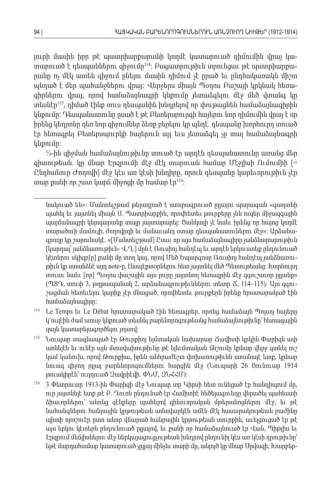 լուրի մասին իբր թէ պատրիարքարանի կողմէ կատարուած դիմումին վրայ կա -տարուած է դեսպաններու զիջումը 114: Բացատրութիւն տրուեցաւ թէ պատրիարքա -րանը ոչ մէկ ատեն զիջում ընելու մասին դիմում չէ ըրած եւ ընդհակառակն միշտ պնդած է մեր պահանջներու վրայ Վերջերս միայն Պօղոս Բաշայի կրկնակ հեռա : -գիրներու վրայ որով համաձայնագրի կնքումը յետաձգելու մէջ մեծ վտանգ կը , տեսնէր115, դիմած էինք ռուս դեսպանին խնդրելով որ փութացնեն համաձայնագիրին կնքումը Դեսպանատունը ըսած է թէ Բետերսբուրգի հայերու նոր դիմումին վրայ է որ: իրենց կեդրոնը դեռ նոր զիջումներ ձեռք բերելու կը պնդէ դեսպանը խորհուրդ տուած . էր հեռագրել Բետերսպուրկի հայերուն այլ եւս յետաձգել չը տալ համաձայնագրի կնքումը: ⅓ ին զիջման համաձայնութիւնը տուած էր արդէն դեսպանատունը առանց մեր- գիտութեան կը մնար Էրզրումի մէջ մէկ տարուան համար Մէջլիսի Ումումիի. [= Ընդհանուր Ժողովի մէջ կէս առ կէսի խնդիրը որուն դեսպանը կարեւորութիւն չէր ] , տար քանի որ շատ կարճ միջոցի մը համար էր 116: նակուած են »: Մանտելշթամ թելադրած է ստորագրուած ըլլալու պարագան գաղտնի « պահել եւ յայտնել միայն Ս Պատրիարքին որովհետեւ թուրքերը չեն ուզեր միջազգային . , պայմանագրի կերպարանք տալը յայտարարել Ցանկալի չէ նաեւ իրենց որ հայոց կողմէ : տարածուի մամուլի ժողովրդի եւ մանաւանդ օտար դեսպանատուներու մէջ Արձանա , »: -գրողը կը շարունակէ . «[Մանտելշթամ Ըսաւ որ այս համաձայնագիրը յանձնարարութիւն] [կարդալ՝ յանձնառութիւն Վ Ղ մըն է Ռուսիոյ հանդէպ եւ արդէն երկուստեք ընդունուած - . .] կէտերու սկիզբ ը քանի մը տող կայ որով Մեծ Եպարգոսը Ռուսիոյ հանդէպ յանձնառու [ ] , -թիւն կը ստանձնէ այդ note- , ը էնսպէքտօրներու հետ յայտնել մեծ Պետութեանց Խորհուրդ : տուաւ նաեւ որ Պօղոս փաշային այս լուրը յայտնող հեռագրին մէջ զգուշաւոր ըլլանք [ ] » (ՊՏԴ տուփ, 3, թղթապանակ 2, արձանագրութիւններու տետր Ճ , 114–115): Այս զգու -շացման հետեւելու կարիք չէր մնացած որովհետեւ թուրքերն իրենք հրատարակած էին , համաձայնագիրը:114 Le Temps Le Débat եւհրատարակած էին հեռագրեր որոնց համաձայն Պոլսոյ հայերը , կ՚ուզէին ժամ առաջ կնքուած տեսնել բարենորոգութեանց համաձայնութիւնը՝ հետագային զայն կատարելագործելու յոյսով :115 Նուպար տագնապած էր Թուրքիոյ ելմտական նախարար Ճավիտի կրկին Փարիզն ափ առնելէն եւ ունէր այն մտավախութիւնը թէ ելեւմտական ճնշումը կրնար վերջ գտնել ուշ կամ կանուխ որով Թուրքիա իրեն անհրաժեշտ փոխառութիւնն ստանալէ ետք կրնար , , , նուազ զիջող ըլլալ բարենորոգումներու հարցին մէջ Նուպարի ( 26 Յունուար 1914 թուակիրէն՝ ուղղուած Զավրիէվի ՓՆՄ ԶՆՀՀՄ . , ):116 3 Փետրուար 1913- ին Փարիզի մէջ Նուպար տը Կիրսի հետ ունեցած էր հանդիպում մը , ուր յայտնելէ ետք թէ Բ Դուռն ընդունած էր Համիտիէ հեծելագունդը վերածել պահեստի . ձիաւորներու՝ անոնց զէնքերը պահելով զինուորական մթերանոցներու մէջ եւ թէ , նահանգներու հանրային կրթութեան ամավարկէն ամէն մէկ հասարակութեան բաժինը պիտի որոշուէր ըստ անոր վճարած հանրային կրթութեան տուրքին աւելցուցած էր թէ , այս երկու կէտերն ընդունուած ըլլալով եւ քանի որ համաձայնուած էր Վան Պիթլիս եւ , , Էրզրում մեճլիսներու մէջ ներկայացուցչութեան խնդրով ընդունիլ կէս առ կէսի դրութիւնը՝ եթէ մարդահամար կատարուած չըլլայ մինչեւ տարի մը անլոյծ կը մնար Սըվազի Խարբեր , , -94 |ՀԱՅԿԱԿԱՆ ԲԱՐԵՆՈՐՈԳՈՒՄՆԵՐՈՒՆ ԱՌՆՉՈՒՈՂ ՆԻՒԹԵՐ (1912-1914)