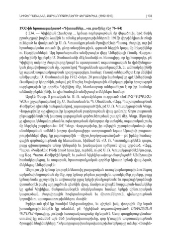 1932-ին հրատարակուած Դիտումներ «...» ու բաժինը էջ ( 76–84) § 234. — Կիլիկեան Զաւեշտը ... կրնար ողբերգութեան մը վերածուիլ եթէ մտիկ , ըրած չըլլայի խղճիս ձայնին եւ ոմանց թելադրութիւններուն : 1912 ի վերջին կիսուն տեղի ունեցած եւ փակուած էր Ս Ռ Կուսակցութեան Բրովիտէնսի Պատգ ժողովը ուր իմ . . . , հրաժարականս տուած էի ցնոր տնօրինութիւն զզուած ներքին կարգ մը Էնթրիկներ , , ու էնթրիկաններէ Այդ հրաժարումէս անմիջապէս վերջ Ամերիկայի Ռամկ Վարչու : . -թիւնը ինծի կը բերէր Մ Տամատեանի մէկ նամակն ու հեռագիրը որ կը հաղորդէր թէ . , , Կիլիկիոյ ամբողջ ժողովուրդը կազմ եւ պատրաստ է ազատագրական եւ վրէժխնդրա -կան յեղափոխութեան մը օգտուելով Պալքանեան պատերազմէն եւ անհամբեր ինծի , , կը սպասէ ապստամբութեան դրօշը պարզելու համար Ուստի անհրաժեշտ է որ մեկնիմ : անմիջապէս Մ Տամատեան իր: . 1912 Հոկտ. 20 թուակիր նամակով կը գրէ Ամերիկայի Ռամկավար կեդրոնին ըսելով թէ Մուշեղ Եպիսկոպոսին ներկայութիւնը հրաշագործ , , « ազդեցութիւն կը գործէ Կիլիկիոյ մէջ հետեւաբար անհրաժեշտ է որ իր նամակը » , անձամբ բերեն ինծի եւ զիս համոզեն անմիջապէս մեկնելու համար , : Արդէն Փետր . 8 թուական եւ Ս Ռ ակումբներու ուղղուած ԽՈՐՀՐԴԱՊԱՀԱ . . « -ԿԱՆ շրջաբերականով մը Մ Տամատեան եւ Պ Օհանեան Ազգ Պաշտպանութեան» , . . , «. Քօմիթէ ի դիւանի հանգամանքով յայտարարած էին թէ Ս Ռ Կուսակցութեան Կեդր» , , . . . Վարչութիւնը չը գիտցաւ իր կացութեան բարձրութեան վրայ գտնուիլ Չորս տարուան « : ընթացքին նոյն իսկ խաղաղ զարգացման գործունէութեան շաւղին մէջ Կեդր Ակումբը . . չը գիտցաւ կենդանութեան եւ ոգեւորութեան մթնոլորտ մը ստեղծել ազատական շունչ , մը ներշնչել շարքերուն Թէ՝ Կեդր Վարչութիւնը իր վերջին շրջաբերականով »: . , « » « իրսնանկութեան ամենէն խոշոր վաւերագիրը ստորագրած եղաւ Այսպիսի բացատ » : -րութիւններէ վերջ կը յայտարարէին , —միշտ խորհրդապահական— թէ իրենք համազ -գային գործակցութեան մը հետամուտ հիմնած են Ս Ռ Կուսակցութենէն դուրս , « . . , բայց գլխաւորապէս անոր կենդանի եւ խանդավառ ոյժերուն վրայ կրթնած , «Ազգ. Պաշտ Քօմիթէն Ինծի եղած հրաւէրը ուրեմն ո՛չ թէ Ս Ռ Կուսակցութենէն կուգար. »: , , . . , այլ Ազգ Պաշտ Քօմիթէին կողմէ եւ . . . յանուն Կիլիկիոյ ամբողջ ժողովուրդին : Անմիջապէս համակերպեցայ եւ տպարան հրատարակչական գործեր կիսատ երեսի վրայ ձգած, , , մեկնեցայ Ամերիկայէն : Անշուշտ չէի կրնար կուրօրէն նետուիլ քաղաքական աւագ կարեւորութիւն ունեցող արկածախնդրութեան մը մէջ որը կրնար թերեւս յաջողիլ եւ պսակել մեր յոյսերը բայց , , կրնար նաեւ չը յաջողիլ եւ աղիտաբեր ըլլալ երկրի բնակչութեան Եւ որպէսզի կարենայի : վստահօրէն քալել այդ լպրծուն գետնին վրայ ճամբուս վրայէն հարցարան նամակներ , - կը գրեմ Կիլիկիա մանրամասնօրէն տեղեկանալու համար երկրի զինուորական , կացութեան ժողովրդային հոգեբանութեան եւ միտումներուն դիմադրութեան, , կորովին ու պատրաստութիւններու մասին : Իրիկուան դէմ կը հասնիմ Աղեքսանդրիա եւ գիշերն իսկ փողոցին մէջ եղած , , խօսակցութիւններէն կը տեսնեմ թէ , Կիլիկեան ապստամբութեան ՉԱՓԱԶԱՆՑ ԳԱՂՏՆԻ ծրագիրը շուկայի հասարակ ապրանք մը եղած է Ասոր զուգընթաց գնահա, : -տումով կը տեսնեմ այն մեծ խանդավառութիւնը զոր կ՚ապրին ապստամբութեան , ծրագրին հեղինակները Դժբաղդաբար խանդավառութիւնս երկար չը տեւեր Հետզհե : : -ՆԻՒԹԵՐ ՀԱՅԿԱԿԱՆ ԲԱՐԵՆՈՐՈԳՈՒՄՆԵՐՈՒ ՎԵՐԱԲԵՐԵԱԼ (1912-1913)| 103