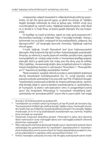 «Հարցարանը այնքան երազական եւ անիրականանալի բաներ կը պարու» -նակէր որ եթէ ձեր գրչով գրուած չըլլար չը պիտի հաւատայի թէ Կիլիկիոյ, , , ներքին կեանքին անծանօթի մը ոճով ալ կրնաք գրել Ամենէն աւելի դուք : ուսումնասիրած էք աղէտէն առաջ Կիլիկիայի հոգեբանութիւնը անկէ վերջն , , , ալ ո՛չ կեանք եւ ո՛չ հոգի մնաց որ կարող ըլլային թելադրել Ձեզ այդ հարցա , -րանը: Իմ կարծիքս ալ ուզած էք իմանալ որքան որ ուրիշ գրով բացատրուած է . մեր մտածելու եղանակը կ՚ակնարկէ Դեկտ (- . 23 թուակիր նամակին ծանօթ .- .), համառօտիւ հոս ալ կ՚ընեմ սոսկացած եմ ձեր բարեկամներէն յանիրաւի ձեզ . , , վերագրուածէն86. չեմ փափաքիր իրաւամբ ժառանգել Կիլիկիայի արիւնով օծուած ըլլալս : Կ՚ուզեն երկիւղի կ՚ուզեն ծերութեան կամ կոշտ նախապաշարման , վերագրեն մենք հակառակ ենք վրէժ լուծելու հակամարդկային գաղափարին, : Թողունք որ անմռունչ ի սպանդ վարուած ատեննիս ըսողներ եղան թրքամոլ, , եւրոպացիներէն թէ Հայերը առիթ տուին ու հասարակաց կարծիքը գայթակ, « » -ղեցուցին ինչե՞ր չը պիտի ըսեն եթէ ուղիղ ըստ մեզ սխալ քայլ մը առնենք, , , , , Բիէր Լոթիները նապաստակի ցեղին վրայ աւելցնելով ըմբոստ եւ անիշխա , « » -նական մակդիրները հայասէր եւ արեւելագէտ Պետուներու (= Պետութիւննե -րու?) 87նպաստաւոր կարծիքը չարափոխելու համար 88: Պիտի առարկուի այդպիսի աննշան լուտանք ու լորձունքներէն վախնալով . մնա՞նք անասնական համակերպութեան մէջ Ո՛չ աւելի կորովով աւելի : . , յարատեւութեամբ պահանջենք 61 րդ յօդուածի կամ, 95 «ի Մայիսեան ծրագրի » Կայս երական բարձրագոյն քոմիսէրի մը ձեռքով գործադրութիւնը պահան[] . -ջենք կեանքի ինչքի եւ պատւոյ իրական ապահովութիւնը եւ պահանջենք ո՛չ , , թէ Եւրոպայէն որ թերեւս թեւարկութիւն անուշ եւ քաղցրահնչիւն բառով , «» գրաւէ մեր նուիրական ծննդավայրը եւ եւրոպական անօթիներով լեցնէ . պահանջեմք օսմ կառավարութենէն յօգուտ մեր եւ յօգուտ իրեն Եթէ ապրիլ . 89 : փաշայի եւ իմ ճամբորդութեան զուգադիպումէն :86 Կաթողիկոսին այս տողերէն այնպէս կը հասկցուի թէ երբ մէկ կողմէ զիս հրաւիրող Ազգ , . Պաշտպանութեան Քոմիթէն զիս գործի կը հրաւիրէ Կիլիկիոյ ամբողջ ժողովուրդին անունով , միւս կողմէն նոյն այդ Քոմիթէն իր շրջաբերականներով ջանացած է հաւատացնել Կիլիկիոյ ժողովուրդին թէ ես եմ որ կը կազմակերպեմ յեղափոխական այդ շարժումը Տարիներ, : յետոյ ստուգեցի այս պարագան :87 Սերոբեանի աւելցուցած փակածեալ թէական Պետութիւն ը կրնայ ճիշդ նկատուիլ «?» միայն արեւելագէտ բառը արեւելքցին սիրող կամ արեւելքցիի բարեկամ իմաստով «» « » « » ընդունուելու պարագային Վ Ղ - . .:88 Փիէր Լոթի գրչանունով ծանօթ ֆրանսացի ծովային սպայ եւ ֆրանսական կաճառի անդամ արձակագիրը հայ գրականութեան մէջ ապահոված է թրքասիրութեան եւ հայատեցու -թեան խորհրդանիշի յատուկ պատուանդան մը՝ հայերը վարկաբեկելով թուրքերուն շռայ -լած իր գովեստներուն եւ թրքական շահեր պաշտպանելուն համար Վ Ղ - . .:89 Սահակ Կաթողիկոս չափազանց հաւատք ունի Թուրքիոյ բարեացակամութեան մասին : ՆԻՒԹԵՐ ՀԱՅԿԱԿԱՆ ԲԱՐԵՆՈՐՈԳՈՒՄՆԵՐՈՒ ՎԵՐԱԲԵՐԵԱԼ (1912-1913)| 115