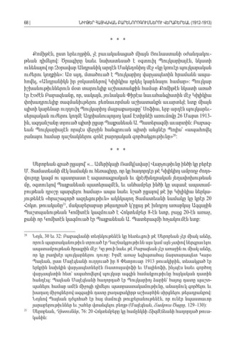 * * * Քոմիթէն ըստ երեւոյթին չէ բաւականացած միայն Յունաստանի օժանդակու, , -թեան դիմելով Ծրագիրը նաեւ նախատեսած է օգտուիլ Պուլկարիայէն նկատի : , ունենալով որ Զօրավար Անդրանիկ արդէն Մակեդոնիոյ մէջ կը կռուէր պուլկարական « ուժերու կողքին Առ այդ մտածուած է Պուլկարիոյ վարչապետին հրամանն ապա »: , -հովել Անդրանիկն իր ջոկատներով Կիլիկիա ղրկել կարենալու համար, « »: Պուլկար իշխանութիւններուն մօտ տարուելիք աշխատանքին համար Քոմիթէն նկատի առած էր Էօժէն Բաբազեանը որ սակայն յունական Փիրէա նաւահանգիստին մէջ Կիլիկիա , , , փոխադրուելիք ռազմանիւթերու բեռնաւորման աշխատանքն աւարտելէ ետք միայն պիտի կարենար ուղղուիլ Պուլկարիոյ մայրաքաղաքը՝ Սոֆիա երբ արդէն պուլկարեւ , -սերպական ուժերու կողմէ Ադրիանուպոլսոյ կամ Էտիրնէի առումովը 26 Մարտ 1913-ին ազդանշանը տրուած պիտի ըլլար Պալքանեան Ա Պատերազմի աւարտին Բաբազ, . : -եան Պուլկարիայէն որպէս վերջին հանգրուան պիտի անցնէր Պոլիս՝ ապահովել « ջանալու համար դաշնակներու գոնէ բարոյական գործակցութիւնը » : 20 * * * Սերոբեան գրած ըլլալով՝ «... Ամերիկայի Ռամկ ավար Վարչութիւնը ինծի կը բերէր [] Մ Տամատեանի մէկ նամակն ու հեռագիրը որ կը հաղորդէր թէ Կիլիկիոյ ամբողջ ժողո. , -վուրդը կազմ ու պատրաստ է ազատագրական եւ վրէժխնդրական յեղափոխութեան մը օգտուելով Պալքանեան պատերազմէն եւ անհամբեր ինծի կը սպասէ ապստամ, , -բութեան դրօշը պարզելու համար ապա նաեւ նշած ըլլալով թէ իր Կիլիկիա ներկա » -յութենէն հրաշագործ ազդեցութիւն ակնկալող Տամատեանի նամակը կը կրէր « » 20 Հոկտ թուականը. 21, մակաբերաբար թելադրած կ՚ըլլայ թէ խնդրոյ առարկայ Ազգային Պաշտպանութեան Կոմիտէն կազմուած է Հոկտեմբեր 8- էն ետք բայց, 20- էն առաջ, քանի որ Կոմիտէն կազմուած էր Պալքանեան Ա Պատերազմի հռչակումէն ետք . : 20 Նոյն, 30 32: եւԲաբազեանի տեղեկութենէն կը հետեւցուի թէ Սերոբեան չէր միակ անձը , որուն պարտականութիւն տրուած էր Դաշնակցութիւնն այս կամ այն չափով ներգրաւելու ապստամբութեան ծրագրին մէջ Կը թուի նաեւ թէ Բաբազեան չէր առաջին ու միակ անձը : , որ կը բաղխէր պուլկարներու դուռը Իրմէ առաջ եգիպտահայ ճարտարապետ Կարօ : Պալեան ըստ Մալէզեանի ուղղուած իր, 8 Փետրուար 1913 թուակիրին տեսակցած էր, երկրին նախկին վարչապետներէն Ռատոսլավոֆի եւ Մալինոֆի ինչպէս նաեւ գործող , վարչապետին հետ՝ ապահովելով պուլկար ազգին համակրութիւնը հայկական դատին հանդէպ Պալեան Մալէզեանի հաղորդած էր Պուլկարիոյ ձարին՝ հայոց դատը պաշտ: -պանելու համար ամէն միջոցի դիմելու պատրաստակամութիւնը անաղմուկ գործելու եւ , խաղաղ միջոցներով ազգային դատը քաղաքակիրթ աշխարհին սիրցնելու թելադրանքով : Նոյնով Պալեան դժգոհած էր հայ մամուլի թուլբերանութենէն որ ունէր նպաստաւոր , յարաբերութիւններ եւ շահեր վտանգելու բնոյթ Մալէզեան (, Ճամբուս Ծայրը , 129–130): 21 Սերոբեան, Դիտումներ, 76: 20 Հոկտեմբերը կը համընկնի Ճիզմէճեանի հաղորդած թուա -կանին:68 |ՆԻՒԹԵՐ ՀԱՅԿԱԿԱՆ ԲԱՐԵՆՈՐՈԳՈՒՄՆԵՐՈՒ ՎԵՐԱԲԵՐԵԱԼ (1912-1913)