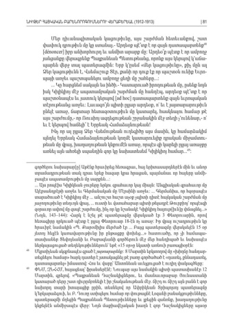 Մեր դիւանագիտական կացութիւնը այս շարժման հետեւանքով շատ , , փափուկ դրութիւն մը կը ստանայ Արդեօք պէ՞տք է որ զայն դատապարտենք .- 48 [dénoncer] իբր անխորհուրդ եւ անմիտ արարք մը Արդեօ՞ք պէտք է որ ամբողջ : յանցանքը վերագրենք Պալքանեան Պետութեանց որոնք այս կերպով կ՚աճա , -պարեն վերջ տալ պատերազմին Երբ կ՚ըսեմ մեր կացութիւնը քիչ մըն ալ : « », Ձեր կացութիւնն է Վսեմաշուք Տէր քանի որ դուք էք որ պաշտօն ունիք Եւրո , , -պայի առջեւ պաշտպանելու ամբողջ ցեղի մը շահերը ...: ... Կը հարցնեմ սակայն ես ինծի Կատարուած իրողութեան մը ըսենք նոյն .- , իսկ Կիլիկիոյ մէջ ապստամբական շարժման մը հանդէպ արդեօք պէ՞տք է որ , պաշտօնապէս եւ յատուկ կերպով [ad hoc] դատապարտենք զայն եւրոպական տէրութեանց առջեւ Լաւագո՞յն պիտի ըլլար արդեօք ո՛ եւ է յայտարարութիւն : , ընելէ առաջ ճարտար հետազօտութիւն մը կատարել հասկնալու համար թէ , , այս շարժումը որ Ռուսիոյ ազդեցութեան շրջանակին մէջ տեղի չ՚ունենար ո՛ ,- ,- եւ է կերպով հաճելի՞ է Երրեակ Համաձայնութեան ! Ինչ որ ալ ըլլայ Ձեր Վսեմութեան ուղեգիծը այս մասին կը համարձակիմ , պնդել Երրեակ Համաձայնութեան կողմէ կատարուելիք դրական միջամտու -թեան մը վրայ խաղաղութեան կնքումէն առաջ որպէս զի կարելի ըլլայ առաջքը , , առնել այն ահռելի սպանդին զոր կը նախատեսեմ Կիլիկիոյ համար ... : 49գործերու նախարար ը Աթէնք հրաւիրեց հեռագրաւ հայ երիտասարդներէն մին եւ անոր [ ] , տրամադրութեան տակ դրաւ երեք հազար կրա հրացան պայմանաւ որ հայերը անմի , -ջապէս ապստամբութիւն մը սարքեն ...: ... Այս րոպէիս Կիլիկեան ջուրերը երկու զրահաւոր կայ միայն Անգլիական զրահաւոր մը : Ալէքսանդրէթի առջեւ եւ Գերմանական մը Մէրսինի առջեւ : ... Գերմանիա որ հզօրապէս, տարածուած է Կիլիկիոյ մէջ ... անշուշտ հաշտ աչօք չպիտի դիտէ հայկական շարժման մը յաջողութիւնը տեղւոյն վրայ , ... ուստի եւ վստահաբար պիտի թելադրէ Թուրքիոյ՝ որպէսզի զօրաւոր ափով մը զսպէ շարժումը ինչ որ կը նշանակէ Կիլիկիոյ հայութ իւն ը փճացնել , [] ...» (Նոյն, 143–144): Հարկ է նշել թէ պատերազմը վերսկսած էր 3 Փետրուարին որով, հեռագիրը ղրկուած պէտք է ըլլայ Փետրուար 18- էն ոչ առաջ Իր վրայ ուշադրութիւն կը: հրաւիրէ նամակին Պ Քարօմիլիս մերժած էր « . ... Բայց պատերազմը վերսկսելէն 15 օրյետոյ հելլէն կառավարութիւնը իր ընթացքը փոխեց ...» հատուածը որ չի համապա, -տասխաներ Տեփոյեանի եւ Բաբազեանի գործերուն մէջ մեր հանդիպած եւ նախապէս ներկայացուցած տեղեկութիւններուն՝ եթէ «15 » օր ը նկատի առնուի բառացիօրէն :48 Մկրտիչեան սկզբնապէս գրած է յայտարարենք: 8 Մարտին երկտողով մը խիղճը հանդար « -տեցնելու համար հարկ դատեր է յստակացնել թէ բառը գործածած է դատել քննադատել » «, , դատապարտել իմաստով Հոս եւ վարը՝ Անտոնեան աւելցուցած է ուղիղ փակագծերը» : :49 ՓՆՄ ԶՆՀՀՄ հայացեալ՝ ֆրանսերէնէ Նուպար այս նամակին պիտի պատասխանէր, , : 12 Մարտին գրելով, . «Պալքանեան Դաշնակիցներու եւ մասնաւորաբար Յունաստանի , կատարած դերը շատ դիւրըմբռնելի է իր շնականութեան մէջ ճիշդ ու ճիշդ այն բանն է զոր . նախորդ տարի իտալացիք ըրին տեսնելով որ Ափրիկեան Տրիպոլսոյ պատերազմը , կ՚երկարաձգուի եւ Բ Դուռը ստիպելու համար որ փութացնէ Լօզանի բանակցութիւնները, . , պատերազմի մղեցին Պալքանեան Պետութիւնները եւ լքեցին զանոնք խաղաղութիւնը , կնքելնէն անմիջապէս վերջ Նոյն մաքիավէլական խաղն է զոր Դաշնակիցները այսօր : ՆԻՒԹԵՐ ՀԱՅԿԱԿԱՆ ԲԱՐԵՆՈՐՈԳՈՒՄՆԵՐՈՒ ՎԵՐԱԲԵՐԵԱԼ (1912-1913)| 81
