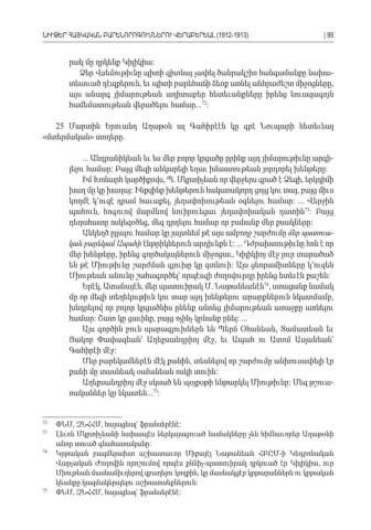 րակ մը ղրկենք Կիլիկիա : Ձեր Վսեմութիւնը պիտի գիտնայ չափել ծանրակշիռ հանգամանքը նախա -տեսուած դէպքերուն եւ պիտի բարեհաճի ձեռք առնել անհրաժեշտ միջոցները , , այս անարգ յիմարութեան աղիտաբեր հետեւանքները իրենց նուազագոյն համեմատութեան վերածելու համար ... : 72 25 Մարտին Երուանդ Աղաթօն ալ Գահիրէէն կը գրէ Նուպարի հետեւեալ «մտերմական տողերը» . ... Անդրանիկեան եւ ես մեր բոլոր կրցածը ըրինք այդ յիմարութիւնը արգի -լելու համար Բայց մեզի անկարելի եղաւ իմաստութեան յորդորել խենթերը : : Իմ Խոնարհ կարծիքովս Պ Մկրտիչեան որ վերջերս գրած է Ձեզի երկդիմի , . , խաղ մը կը խաղայ Ինքզինք խենթերուն հակառակորդ ցոյց կու տայ բայց միւս : , կողմէ կ՚ուզէ դրամ հաւաքել յեղափոխութեան օգնելու համար , : ... Վերջին պահուն հոգուով մարմնով նուիրուեցաւ յեղափոխական դատին, 73: Բայց դեղահատը ոսկեզօծեց մեզ դրդելու համար որ բանանք մեր քսակները , : Անկեղծ ըլլալու համար կը յայտնեմ թէ այս ամբողջ շարժումը մեր պատուա -կան բարեկամ Ապահի էնթրիկներուն արդիւնքն է : ... Դժբախտութիւնը հոն է որ մեր խենթերը իրենց գործակալներուն միջոցաւ Կիլիկիոյ մէջ լուր տարածած , , են թէ Միութիւնը շարժման գլուխը կը գտնուի Այս ցնորամիտները կ՚ուզեն : Միութեան անունը շահագործել՝ որպէսզի ժողովուրդը իրենց ետեւէն քաշեն : Երէկ Ատանայէն մեր պատուիրակ Մ Նաթանեանէն ստացանք նամակ, , . 74, մը որ մեզի տեղեկութիւն կու տար այդ խենթերու արարքներուն նկատմամբ , խնդրելով որ բոլոր կրցածնիս ընենք անոնց յիմարութեան առաջքը առնելու համար Շատ կը ցաւինք բայց ոչինչ կրնանք ընել: , : ... Այս գործին բուն պարագլուխներն են Պերճ Օհանեան Տամատեան եւ , Յակոբ Փափազեան՝ Աղեքսանդրիոյ մէջ եւ Ապահ ու Ատոմ Ասլանեան՝ , Գահիրէի մէջ : Մեր բարեկամներէն մէկ քանին տեսնելով որ շարժումը անխուսափելի էր , քանի մը տասնեակ օսմանեան ոսկի տուին : Աղեքսանդրիոյ մէջ սկսած են պօյքօթի ենթարկել Միութիւնը Մեզ թշուա : -ռականներ կը նկատեն ... : 75 72 ՓՆՄ ԶՆՀՀՄ հայացեալ՝ ֆրանսերէնէ, , :73 Լեւոն Մկրտիչեանի նախապէս ներկայացուած նամակները չեն հիմնաւորեր Աղաթօնի անոր տուած գնահատականը :74 Կրթական բազմերախտ աշխատաւոր Միքայէլ Նաթանեան ՀԲԸՄ ի Կեդրոնական - Վարչական Ժողովին որոշումով որպէս քննիչ պատուիրակ ղրկուած էր Կիլիկիա ուր - , Միութեան մասնաճիւղերով զբաղելու կողքին կը մասնակցէր կրթարաններն ու կրթական , կեանքը կազմակերպելու աշխատանքներուն :75 ՓՆՄ ԶՆՀՀՄ հայացեալ՝ ֆրանսերէնէ, , :ՆԻՒԹԵՐ ՀԱՅԿԱԿԱՆ ԲԱՐԵՆՈՐՈԳՈՒՄՆԵՐՈՒ ՎԵՐԱԲԵՐԵԱԼ (1912-1913)| 95